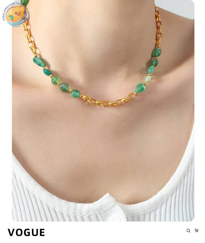 High-grade sense light luxury personality niche titanium steel gold-plated natural crystal stone necklace