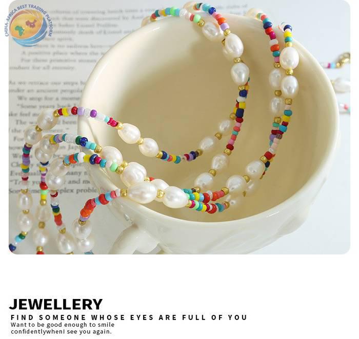 七彩玻璃珠天然淡水珍珠钛钢材质项链波西米亚风
