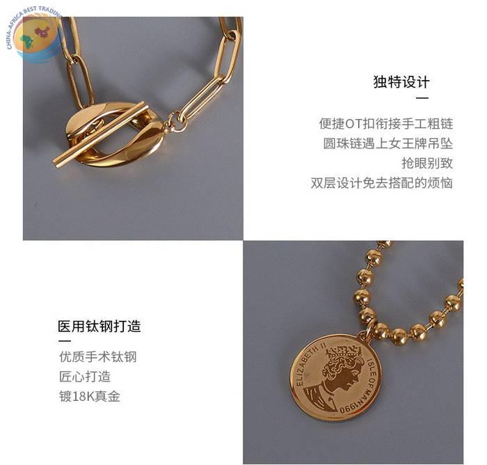 Titanium steel high standard color necklace OT buckle Queen double clavicle necklace