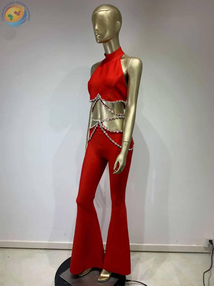 爆款绷带两件套欧美水钻crop top长裤派对套装