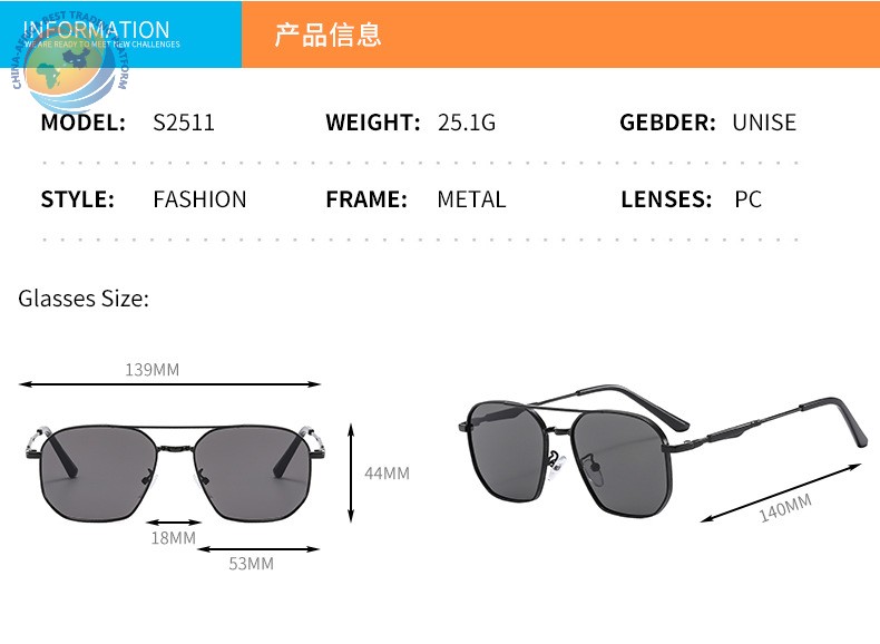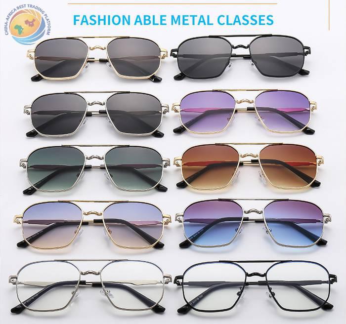 Retro double beam large frame slim metal sunglasses sunblock sunglasses for men