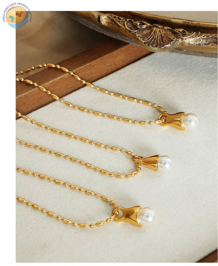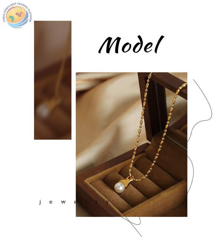 Simple niche design titanium steel gold-plated high light shell bead pendant necklace