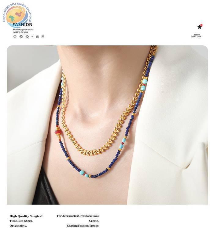 New retro palace style light luxury color natural stone handmade beaded necklace female