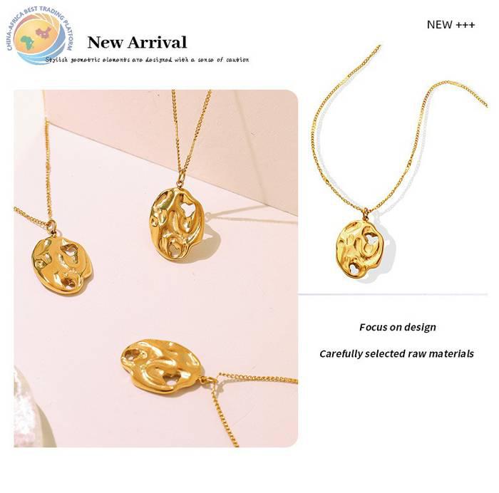 Unique geometric shape irregular grain erosion design simple titanium steel gold plated necklace