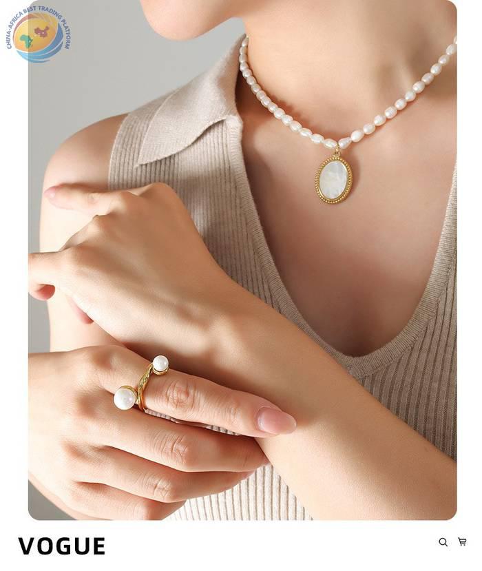 小众设计轻奢复古椭圆镶嵌白海贝壳吊坠项链