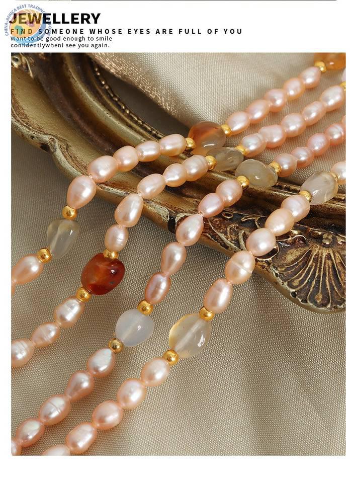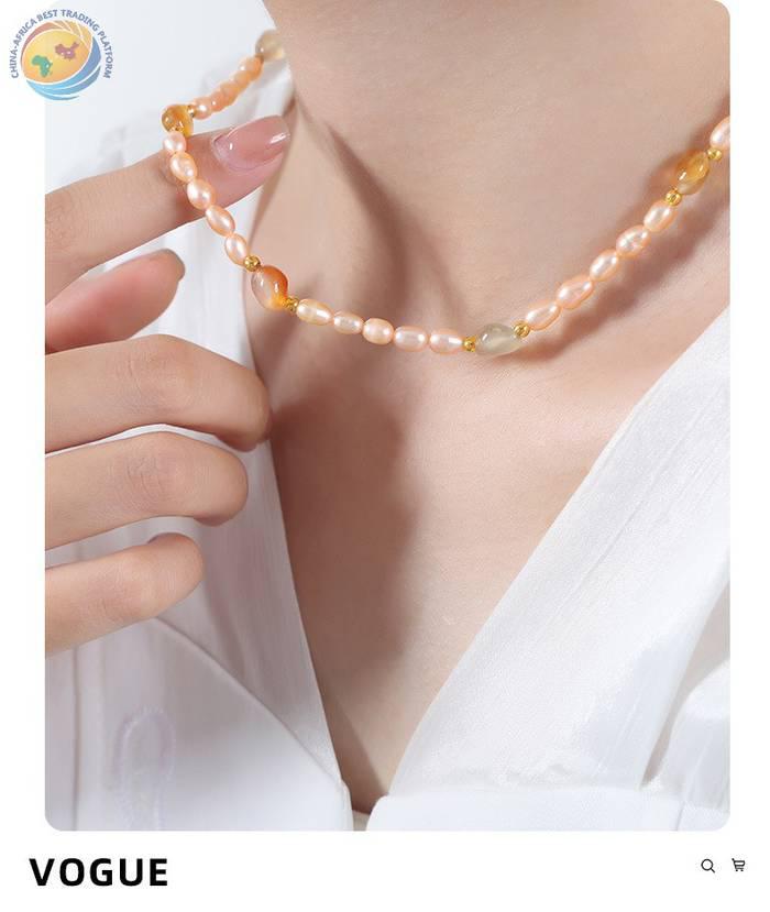 法式粉色串珠气质简约优雅小众设计感锁骨项链
