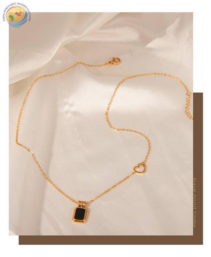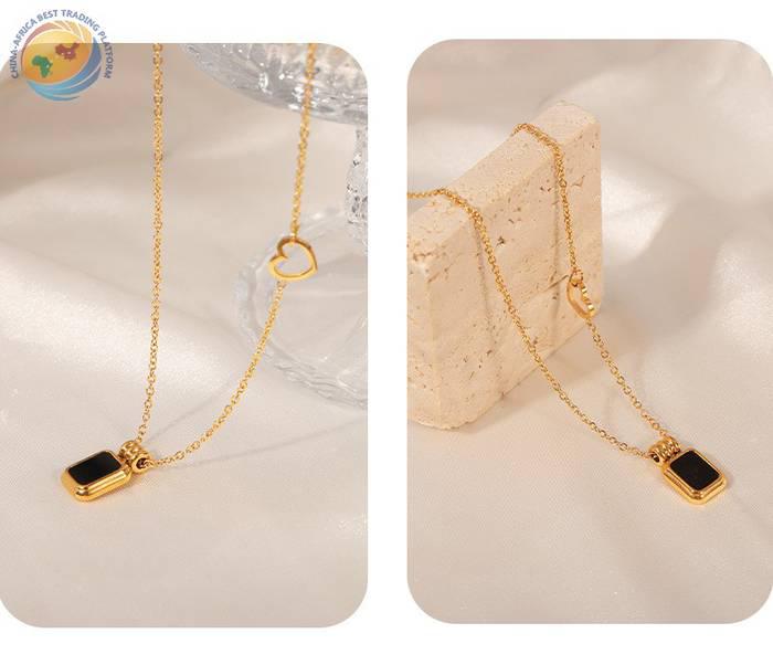 简约个性钛钢镀金几何方形黑色亚克力吊坠项链
