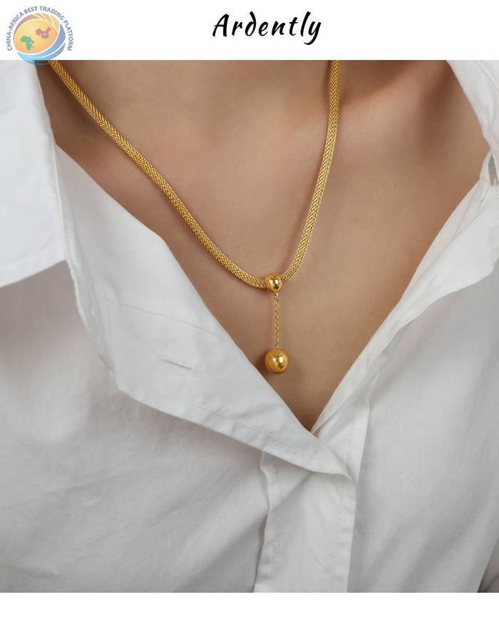 宫廷风钛钢镀金圆珠吊坠时尚弹簧项链
