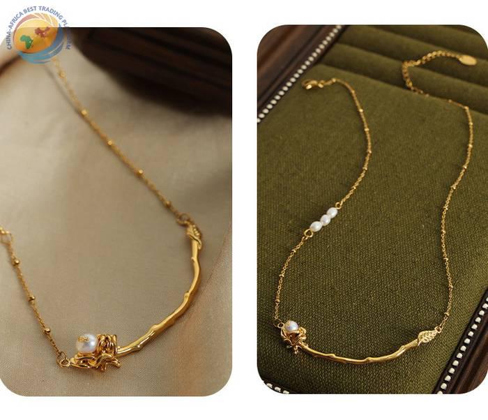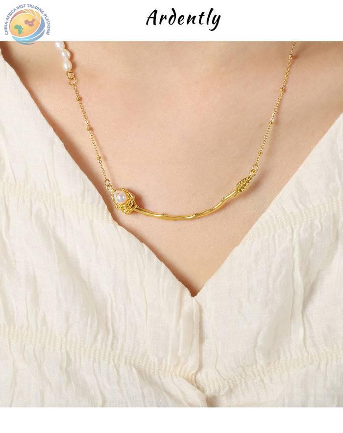 法式小众钛钢镀金玫瑰花吊坠镶淡水珍珠项链