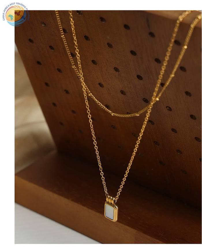 复古轻奢小众设计白海贝钛钢镀金吊坠锁骨链项链