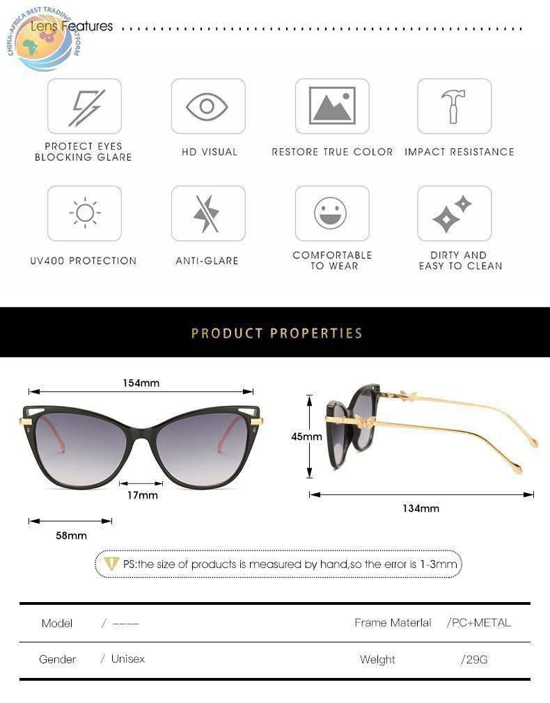 Gradual color butterfly sunglasses European and American retro cat eye metal sunglasses