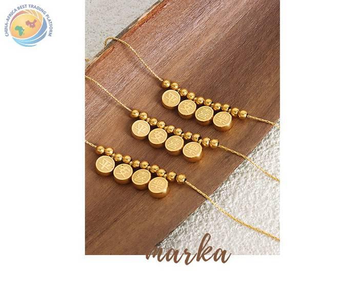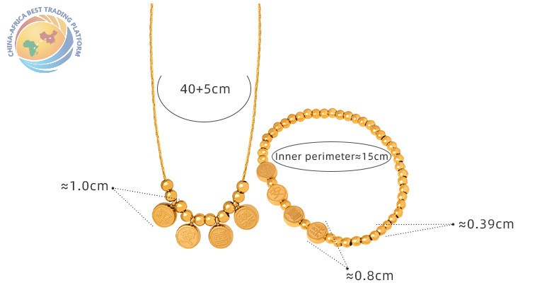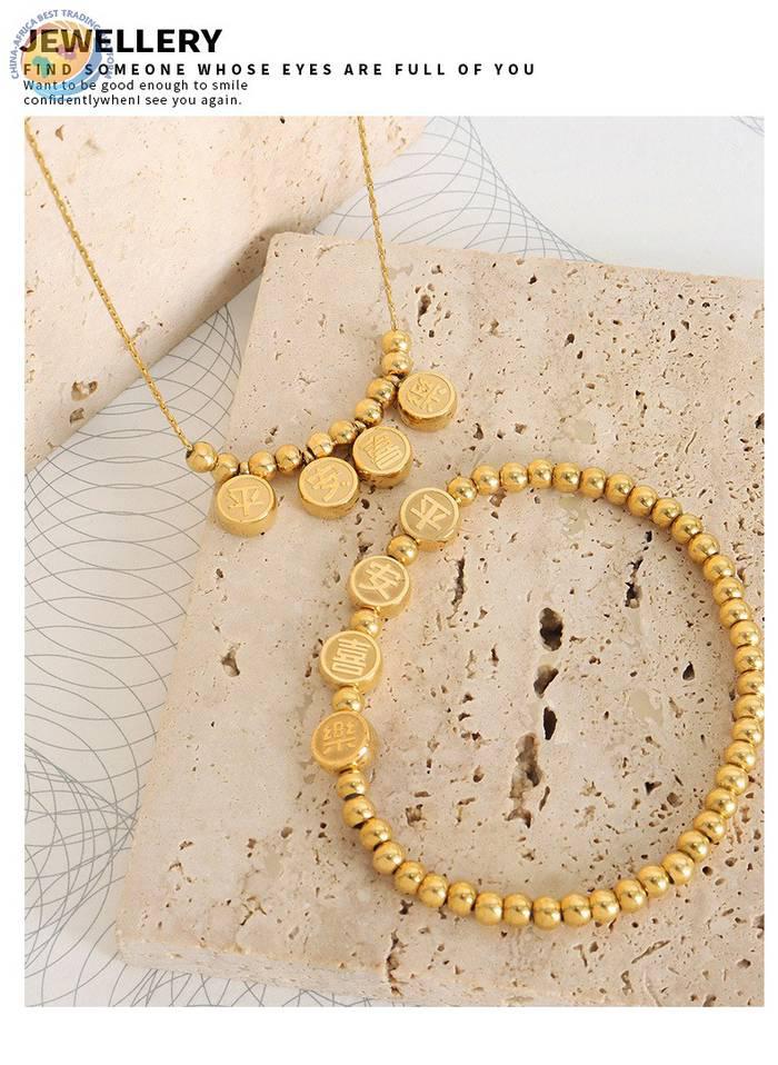 平安喜乐圆牌饰品简约钛钢镀金首饰套装女