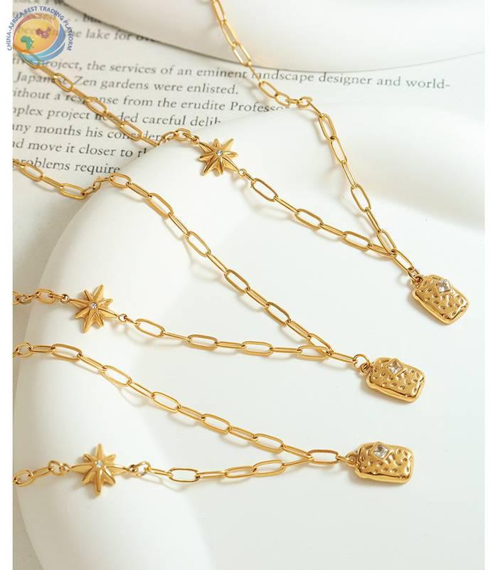 European and American winter inlaid zircon irregular square brand six star pendant necklace