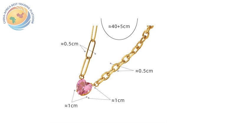 韩式新款潮甜美少女粉锆石镶嵌爱心吊坠项链