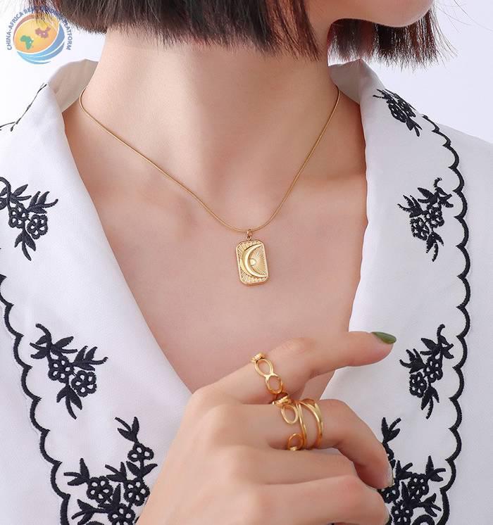 月亮项链 钛钢锁骨链镀18K金首饰品