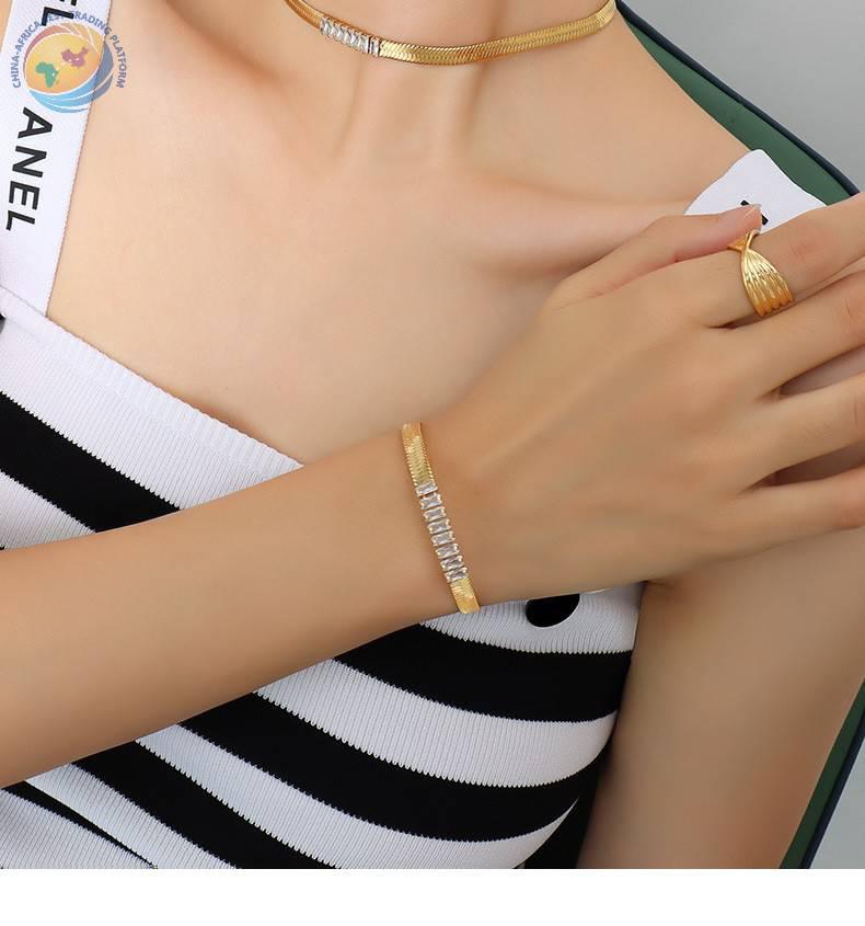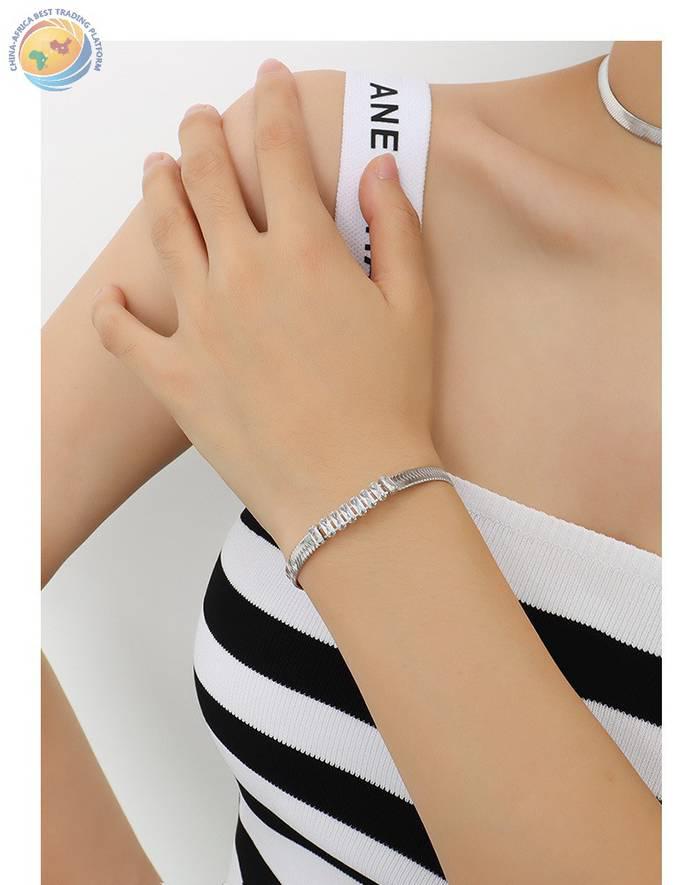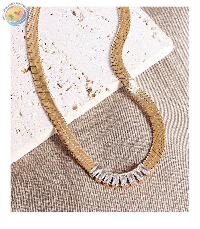 冷淡风设计刀片链衔接方形锆钻钛钢项链手链