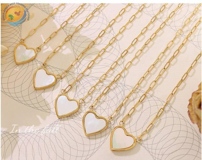 韩式ins风小众设计感白海贝桃心项链女锁骨链