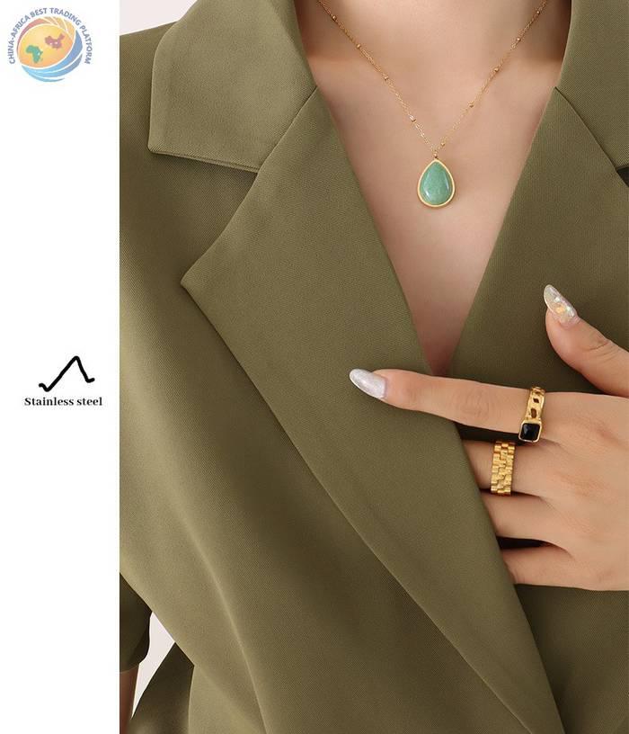 Korean temperament personality natural raw stone clavicle chain drop shaped oval pendant necklace