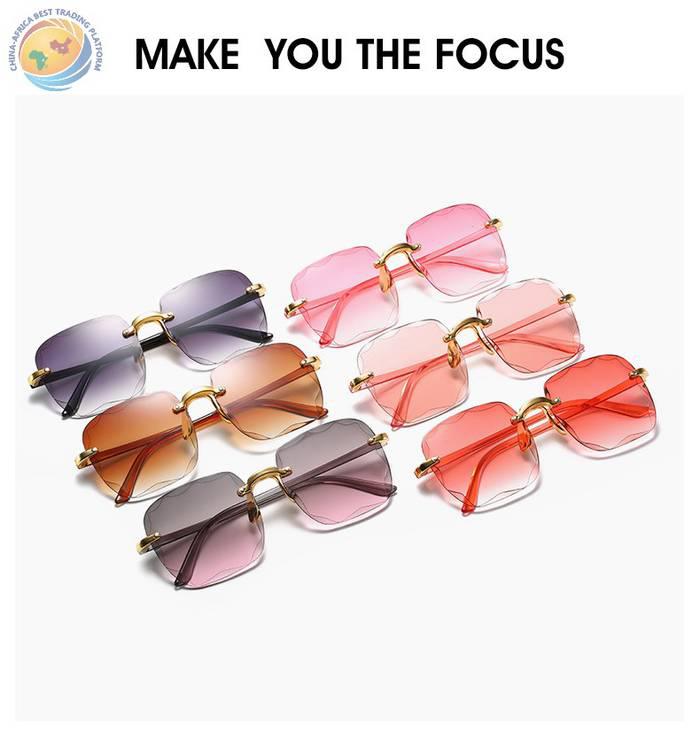 欧美潮流大框方形太阳镜切边无框墨镜女士