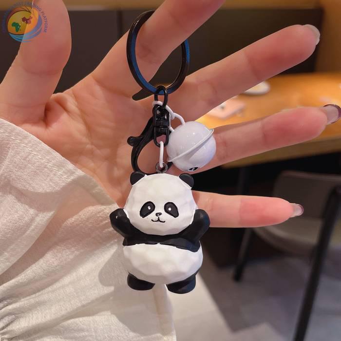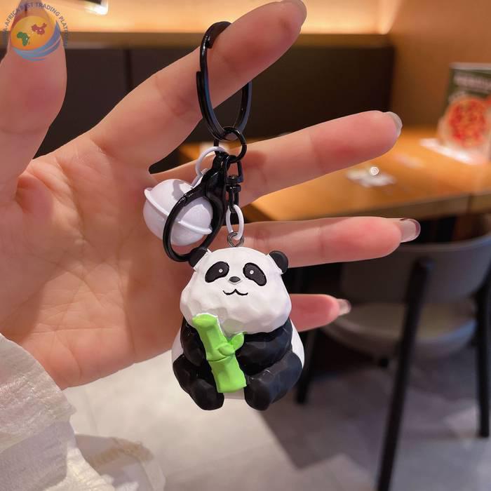 钥匙扣创意精致树脂抱竹熊猫公仔挂件情侣包包挂饰