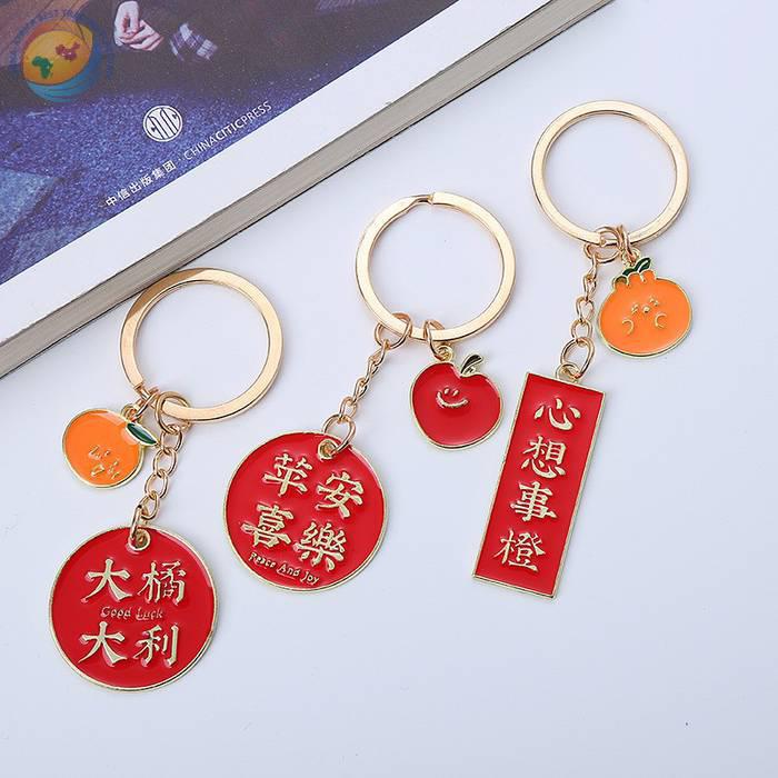 创意中国风水果祝福语柿柿如意合金滴油包包挂饰