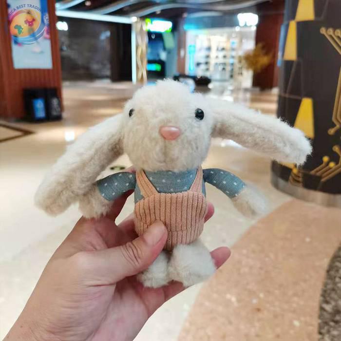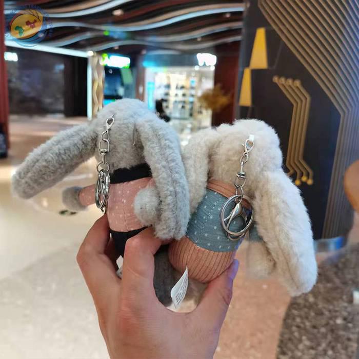 背带裤长耳朵兔子毛绒玩具书包挂件钥匙扣