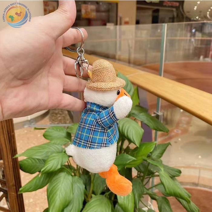 草帽鸭毛绒公仔钥匙扣可爱沙雕鸭包包挂件