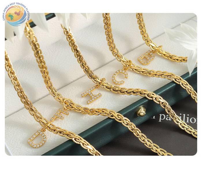 热销个性几何创意26英文字母锆石吊坠龙骨链