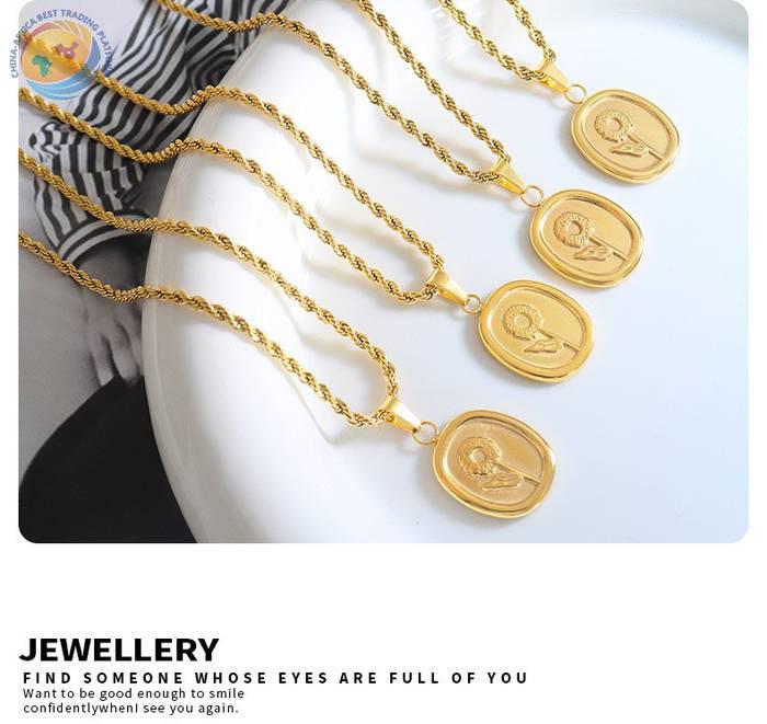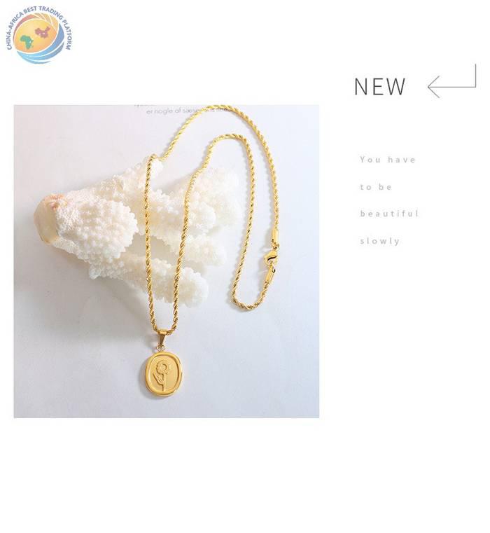 玫瑰花方牌小众麻花链长款钛钢镀金项链中性风法式气质首饰品P817