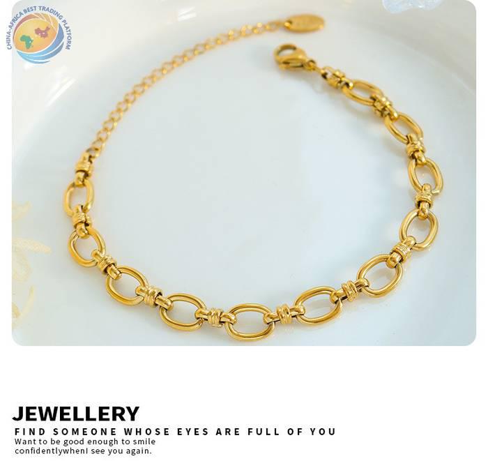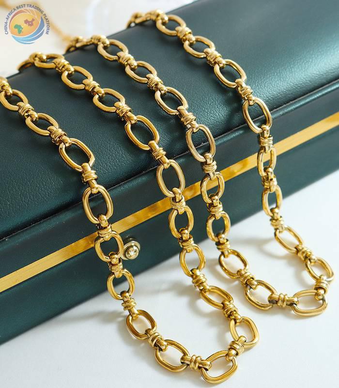 欧美素链环环相扣粗链百搭项链手链 钛钢镀18K金嘻哈时尚首饰套装