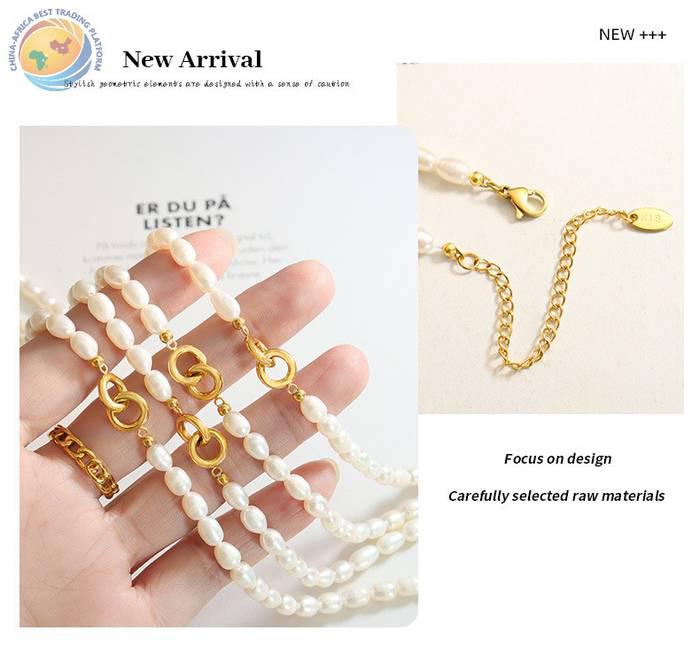 法式不掉色小众轻奢双环扣淡水珍珠百搭钛钢镀金项链不掉色饰品女