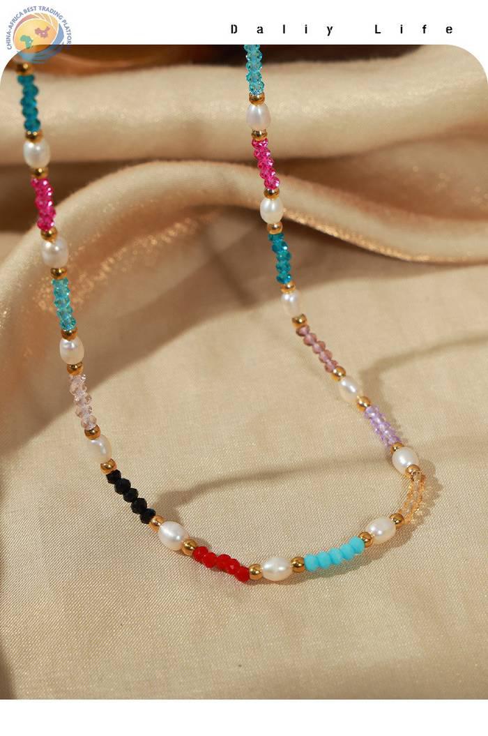欧美新款复古时尚轻奢小众钛钢珠天然石淡水珍珠手工串珠项链饰品