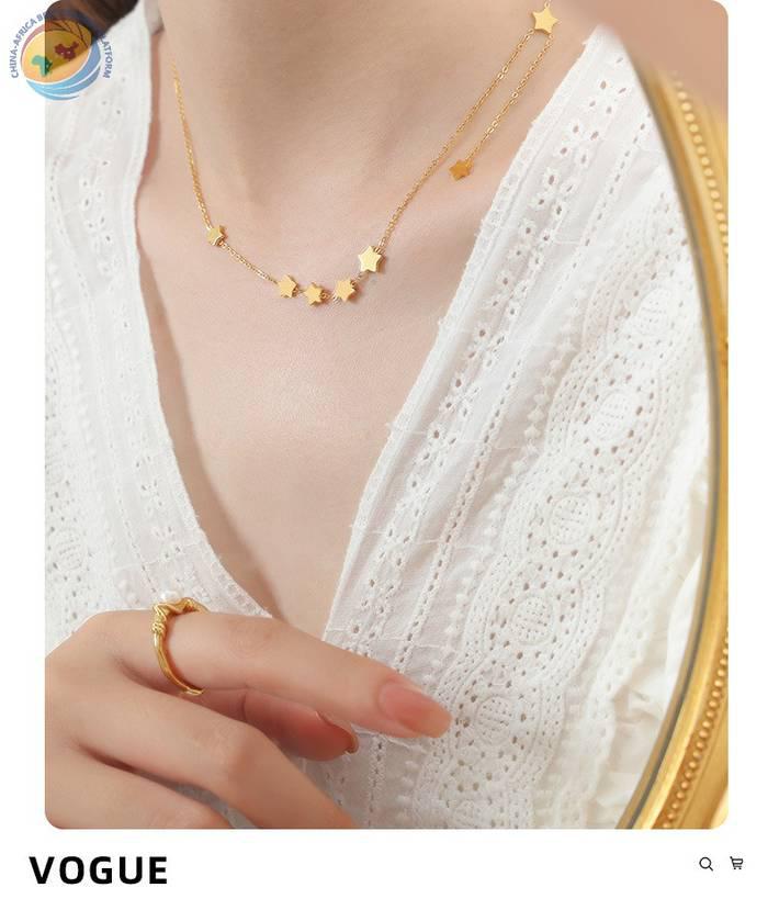 法式marka风格时尚简约优雅五角星吊坠流苏链设计感钛钢镀金项链