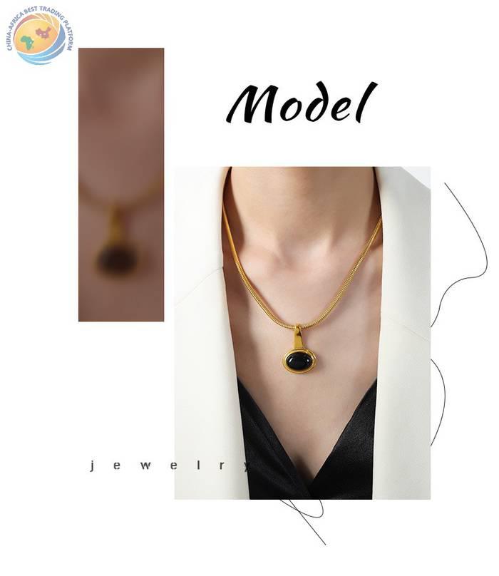 法式新款复古轻奢时尚百搭钛钢镀金玻璃珠吊坠小众项链饰品设计女