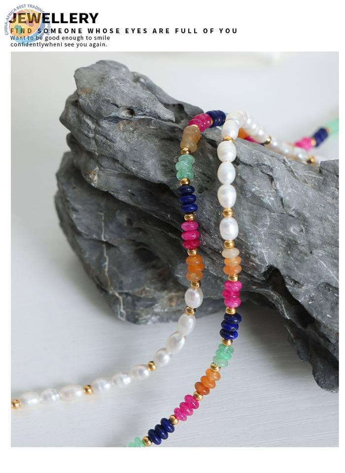 跨境新款复古轻奢高级感巴洛克淡水珍珠彩色天然石手工串珠项链女