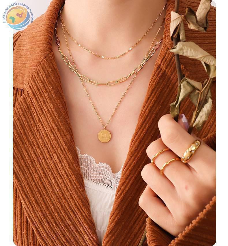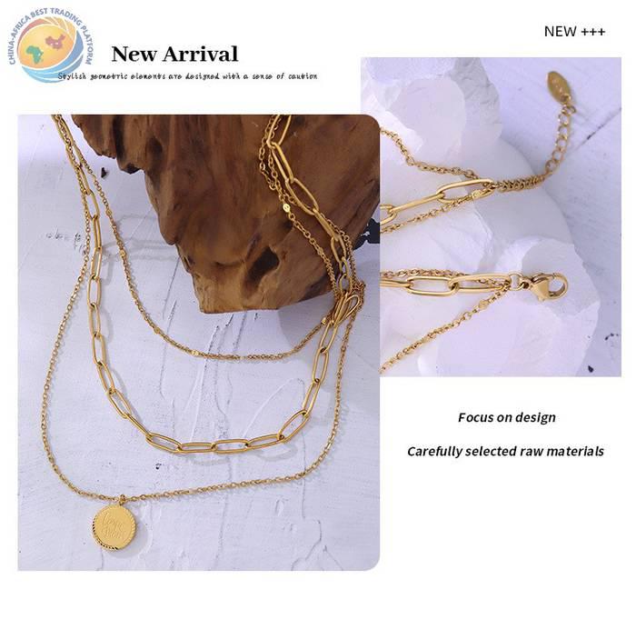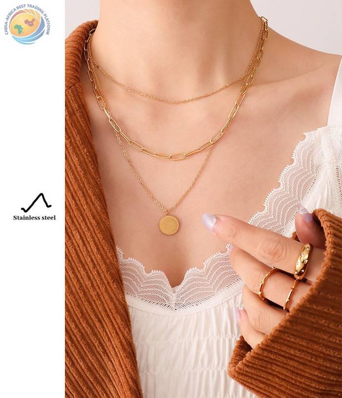 欧美百搭冷淡风英文字母圆牌吊坠项链跨境热销钛钢材质锁骨链饰品