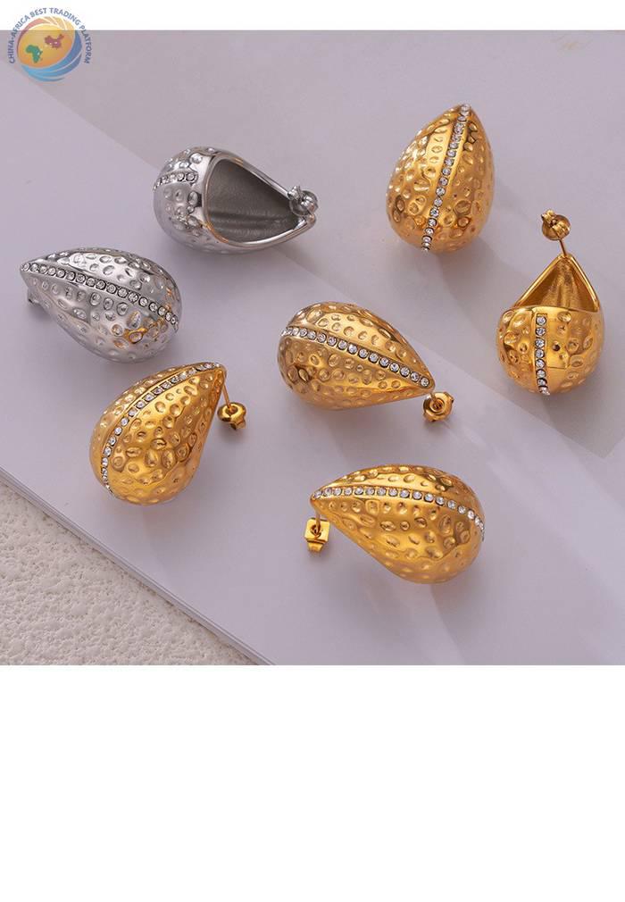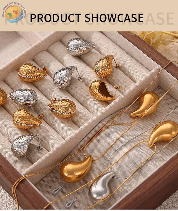 法式时尚冷淡风设计感个性饰品镶钻耳环水滴造型吊坠钛钢首饰套装