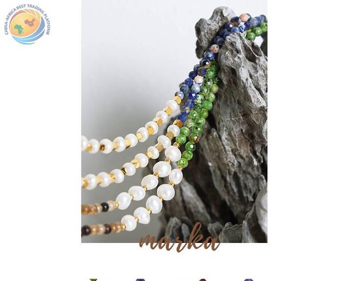 跨境新款时尚小众设计轻奢民族风彩色天然石淡水珍珠项链饰品女