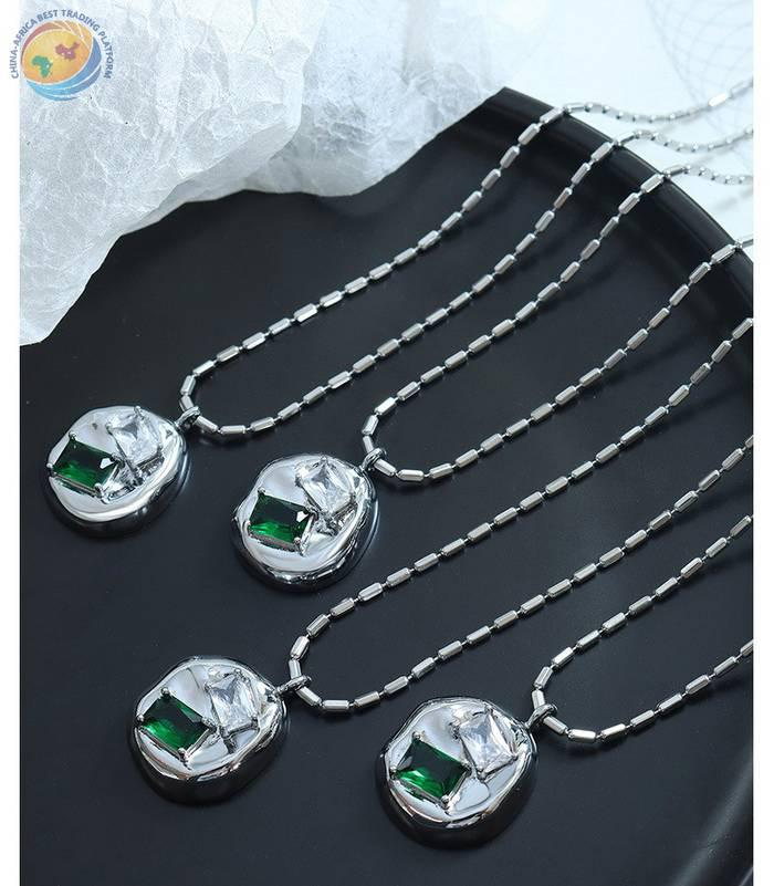 欧美风锆石不规则钛钢吊坠个性高级感竹节链个性时尚通勤项链饰品