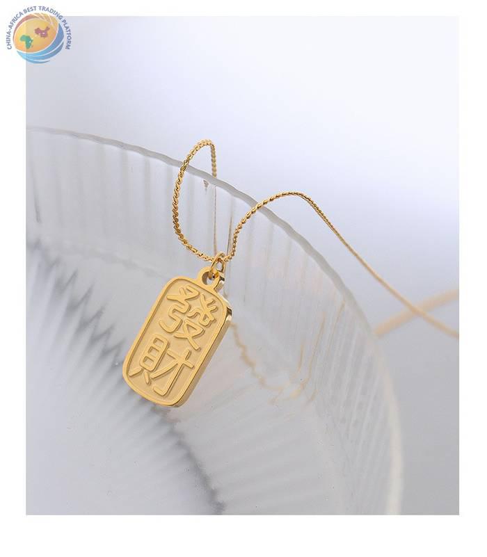 国潮小众时尚设计發财暴富字样吊坠项链钛钢镀18K真金锁骨链首饰