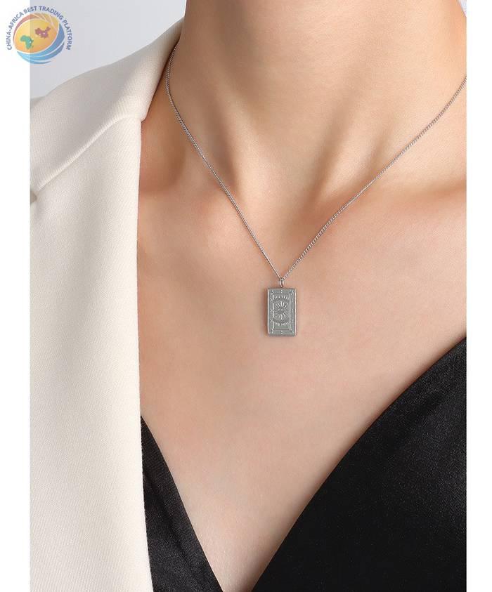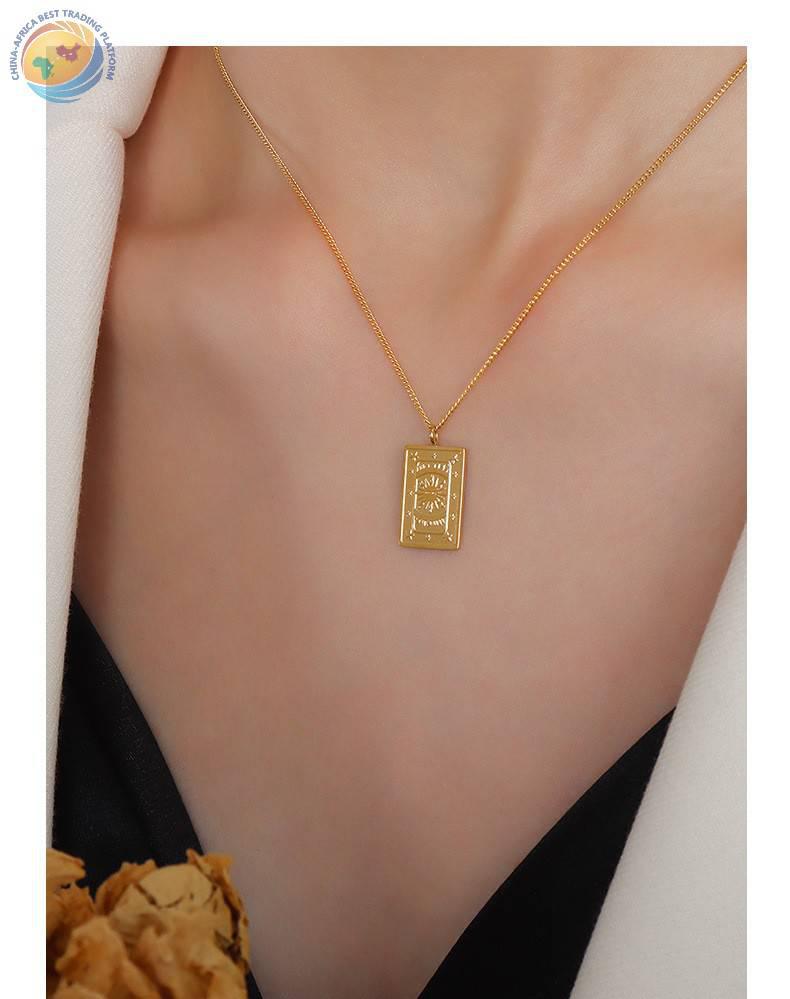 欧美风marka烈阳图案方牌吊坠项链 钛钢镀18k真金锁骨链首饰 P503