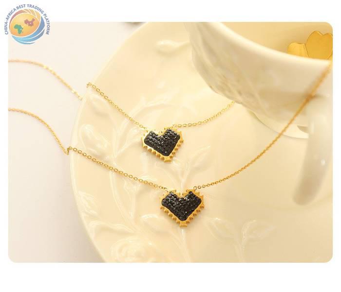 欧美ins风个性气质黑钻锆石爱心锁骨链 镀18K金夏日百搭项链 P640