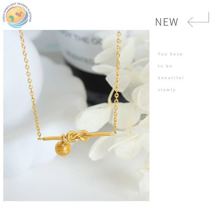 法式ins风唯美创意几何打结钛钢吊坠项链小众百搭设计镀金饰品女