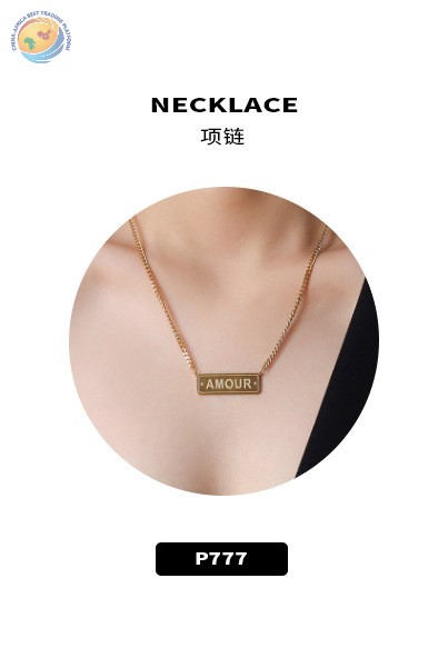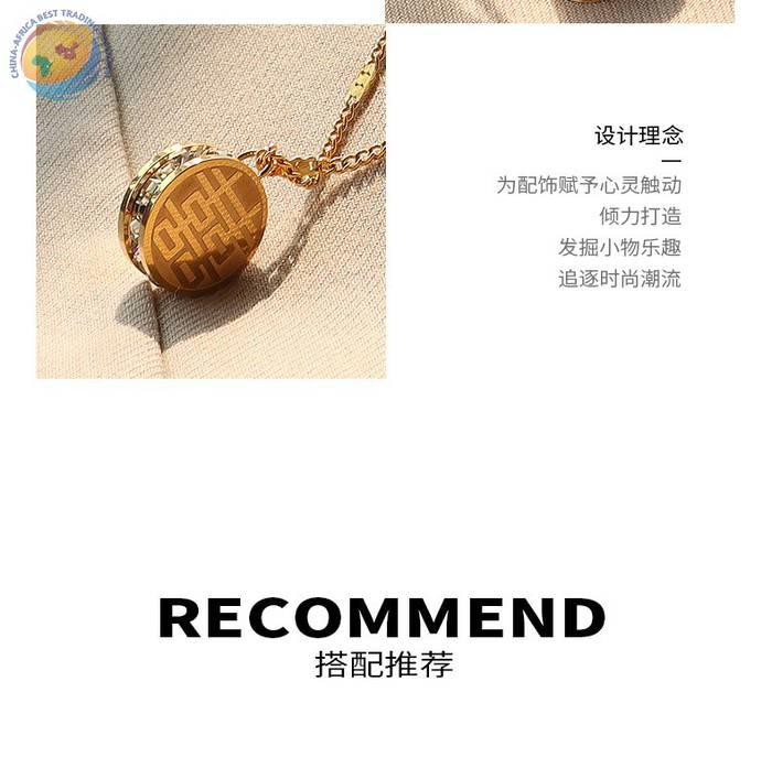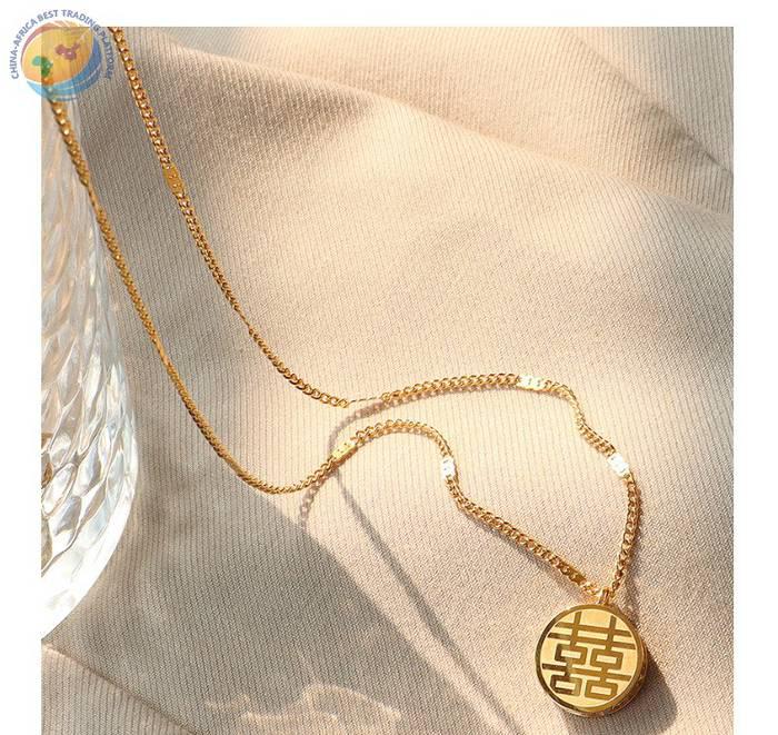 中国风饰品双喜福字双面圆牌锆石吊坠锁骨项链女钛钢18k金 P979
