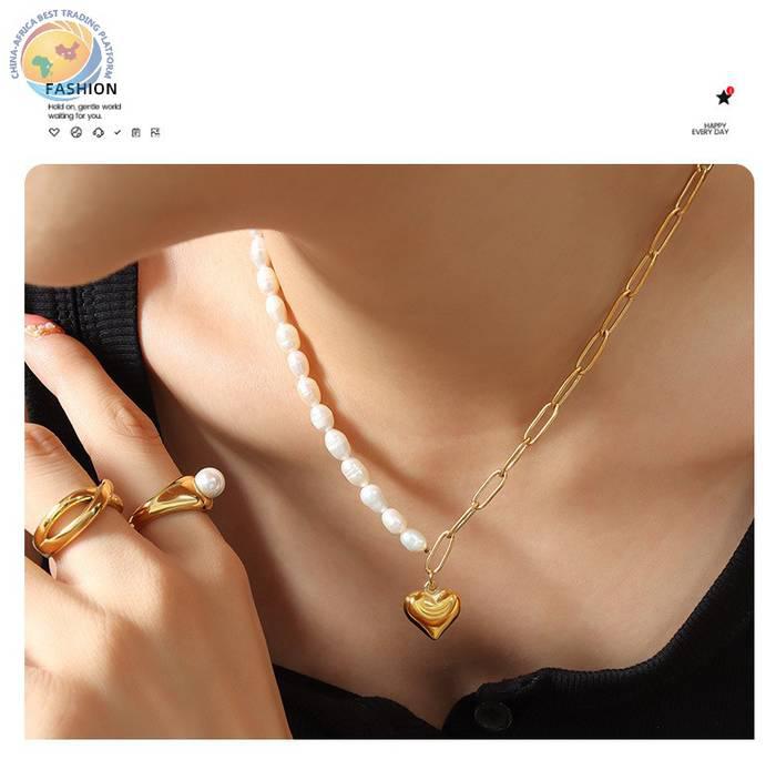 欧美冷淡ins风小众设计感巴洛克淡水珍珠桃心链条项链锁骨链 P691