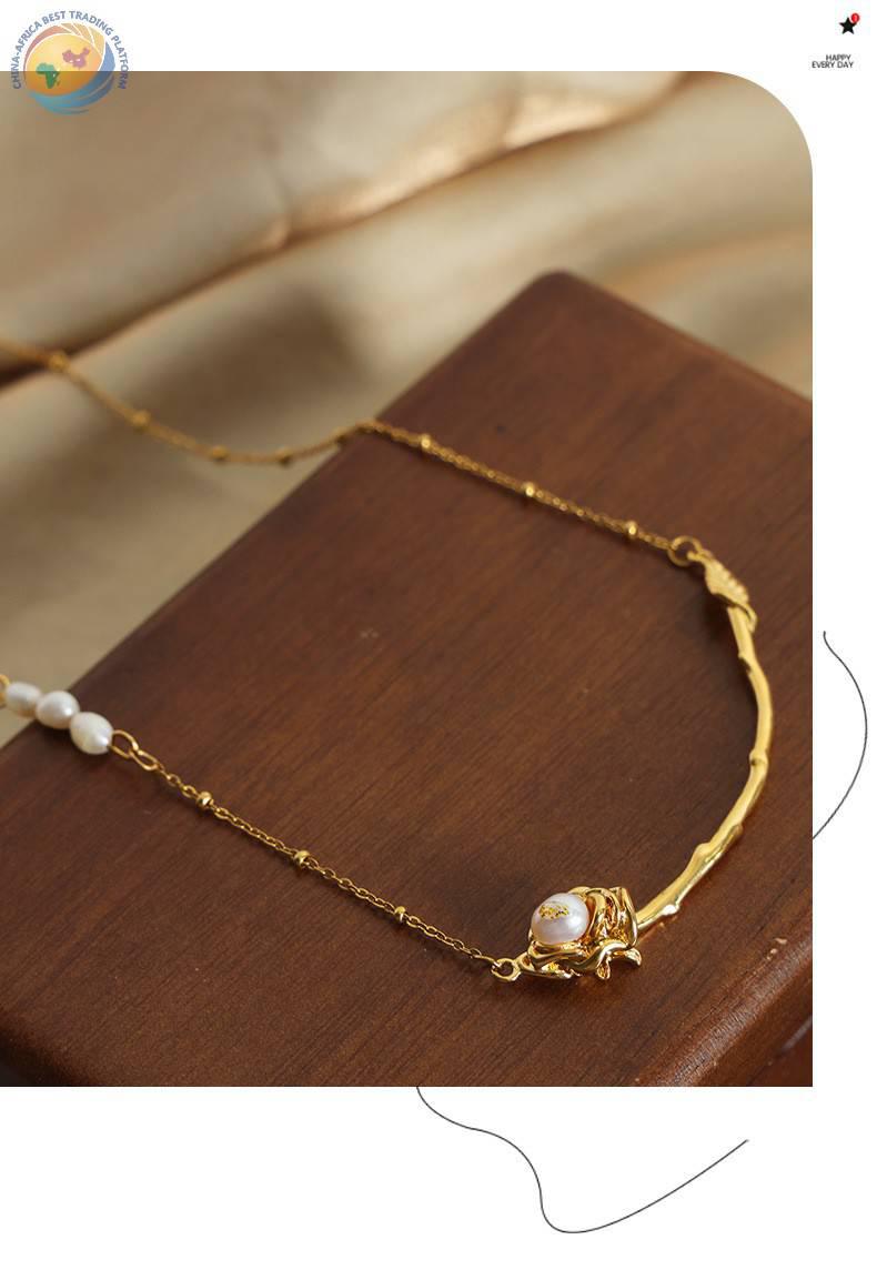 法式简约珍珠玫瑰花朵轻奢优雅名媛风锁骨链钛钢镀18K金女款项链