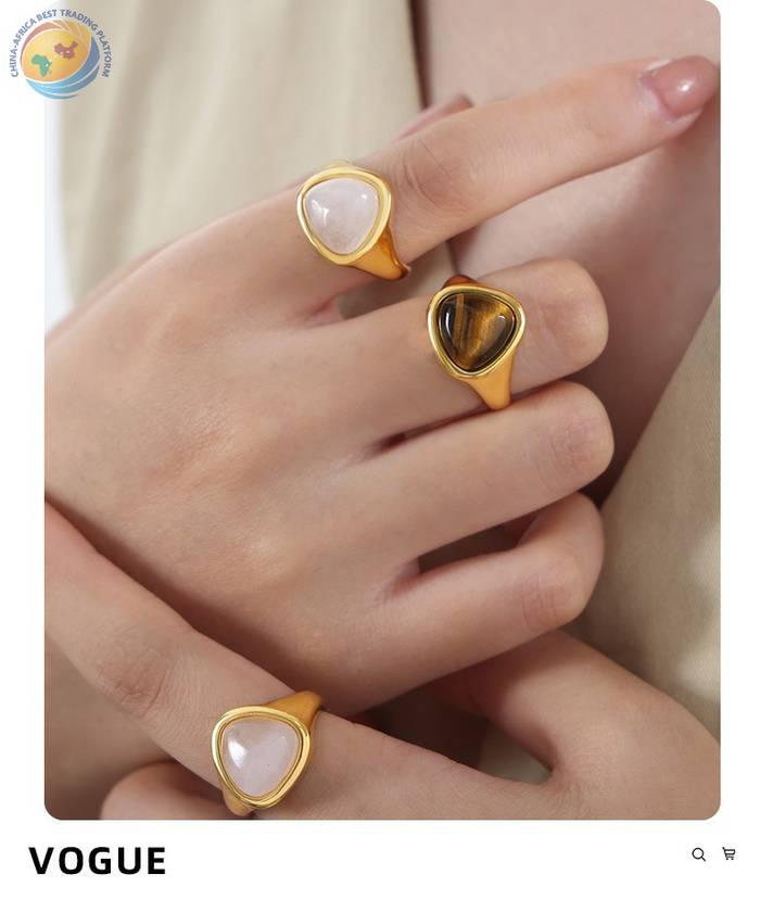 欧美跨境热销天然粉晶石天然虎眼石复古轻奢优雅情侣对戒钛钢戒指