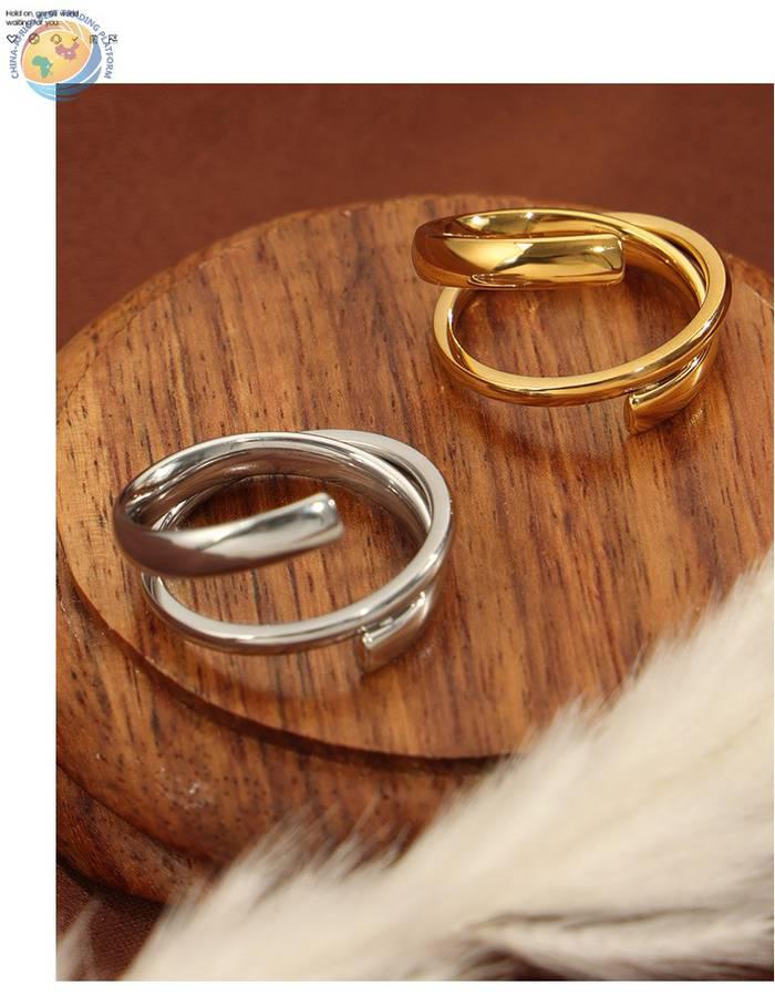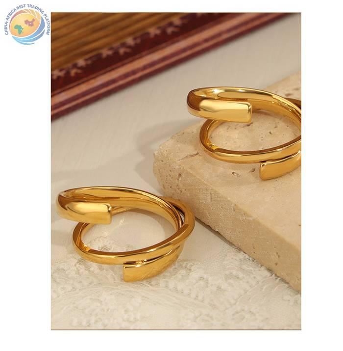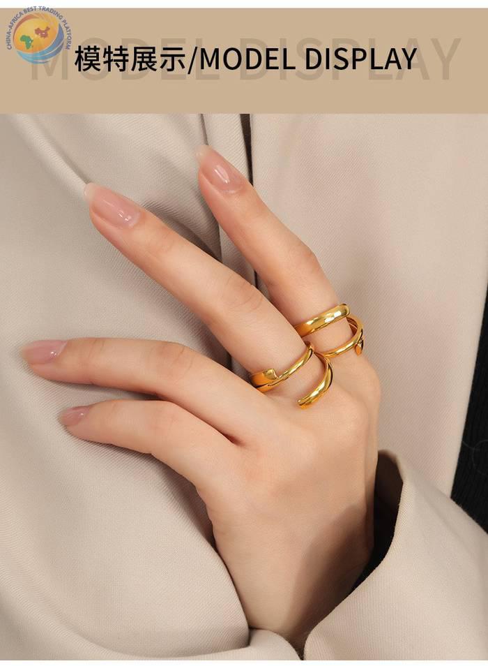 新款跨境ins风简约个性小众设计钛钢镀金不规则时尚戒指饰品批发