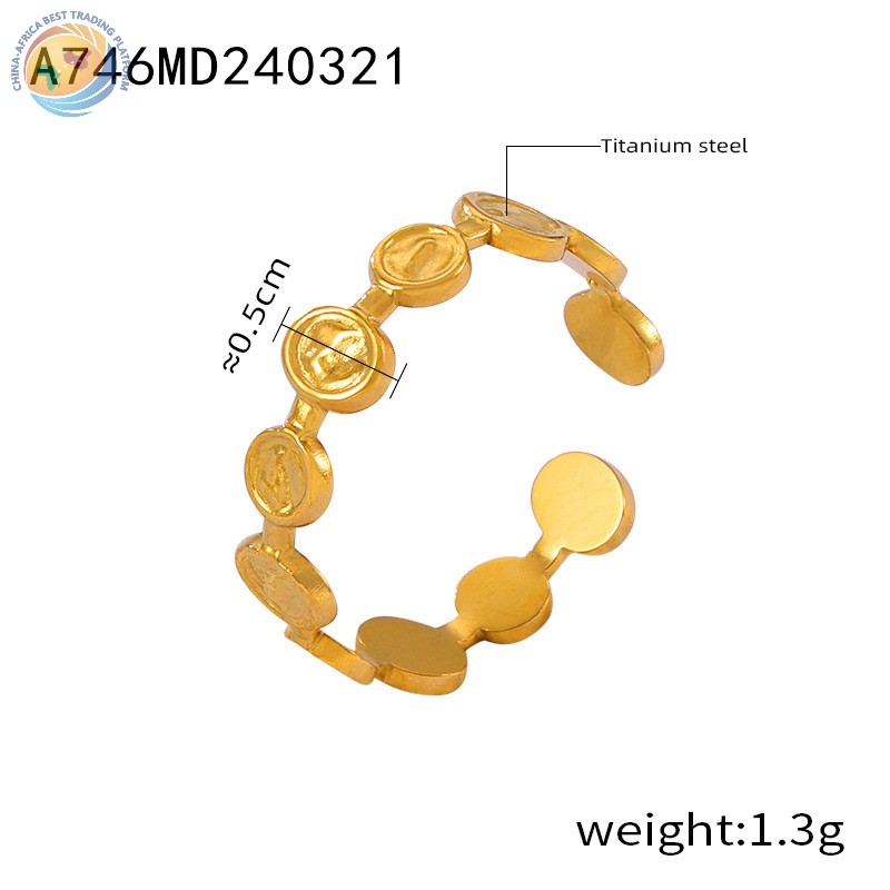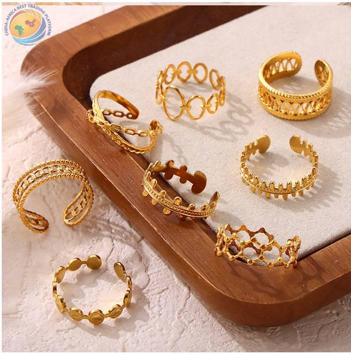 时尚通勤简约休闲风个性镂空饰品线条拼接设计感钛钢镀金开口戒指