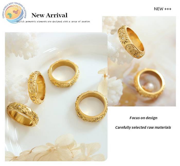 复古设计宫廷风镶嵌锆石浮雕太阳月亮指环钛钢镀18K金男女款戒指